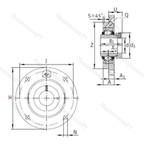 Подшипниковый узел шариковый радиальный TME 45