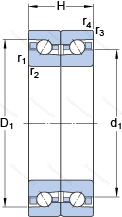 Значения частоты вращения относятся к подшипникам с лёгким преднатягом (суффикс DBA). Для подшипников с сильным преднатягом (суффикс DBB) максимально достижимые частоты вращения составляют около 75 % от приведённых величин.