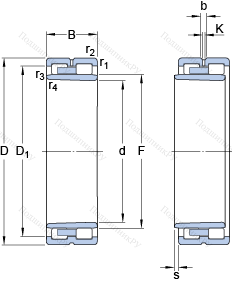 | Максимально достижимая частота вращения для условий смазывания пластичной смазкой | 4000 | r/min | ||